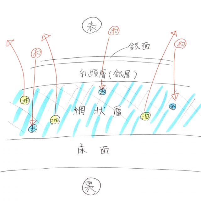 革の層の中でも一番厚くなっている「網状層」かポイントです。