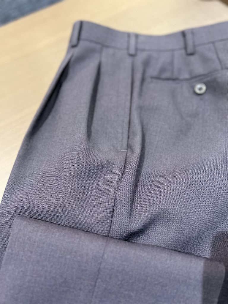 スラックスは副店長の満原さんの2タックスラックスにインスパイアされ2タックにしました。