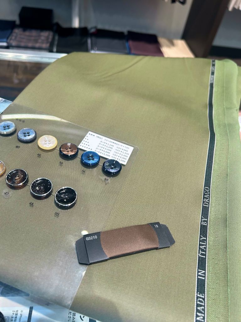 自分のスーツをオーダーしました~!!どんどんパフパフ~!ずっとほしかったグリーン系でオーダーしました。