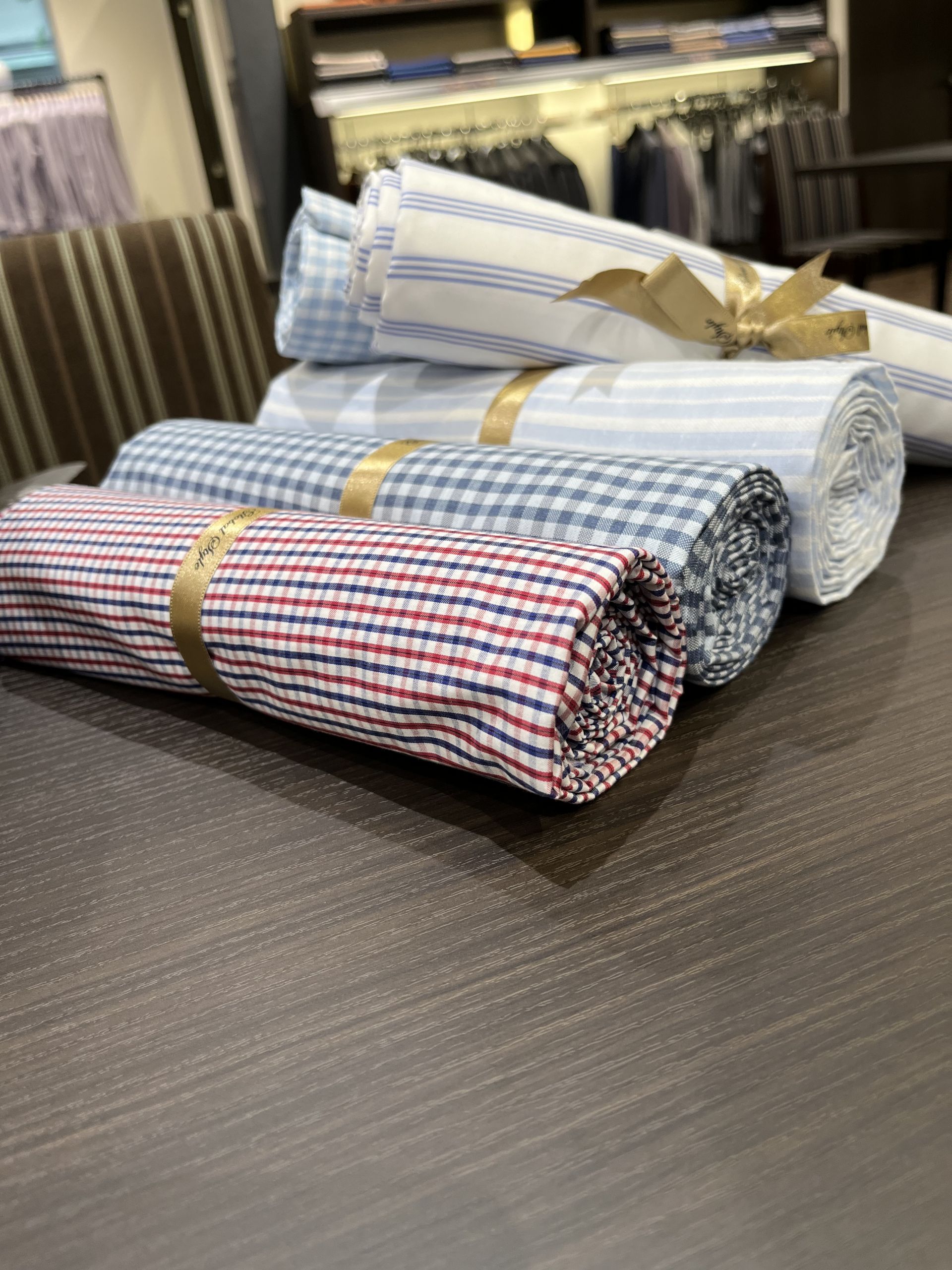 そして、色柄の展開としても老舗のシャツ生地メーカーらしく定番のドビー、ストライプはもちろん、発色の良いファンシーな色柄に至るまで幅広くコレクションを展開しており、今回自分もファンシーな生地でオーダーしてみました!↓ ↓ ↓ ↓ ↓