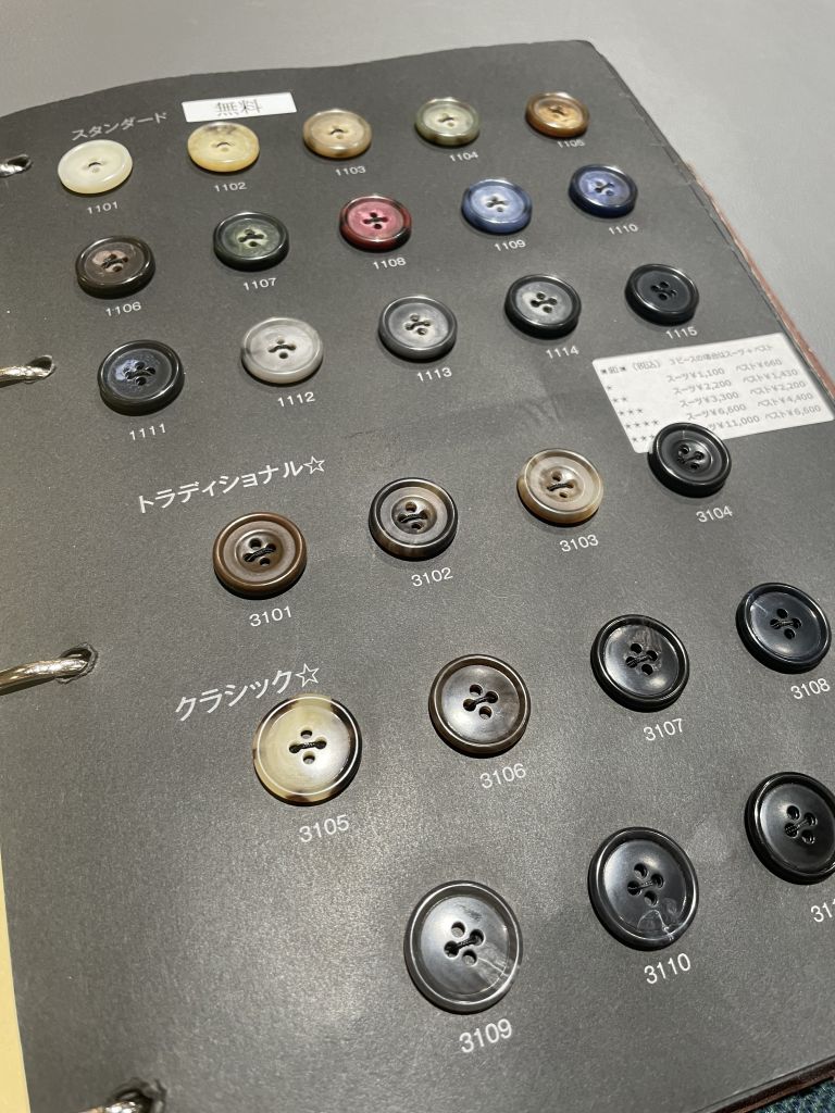 こんなボタンやあんな裏地も選べます!!