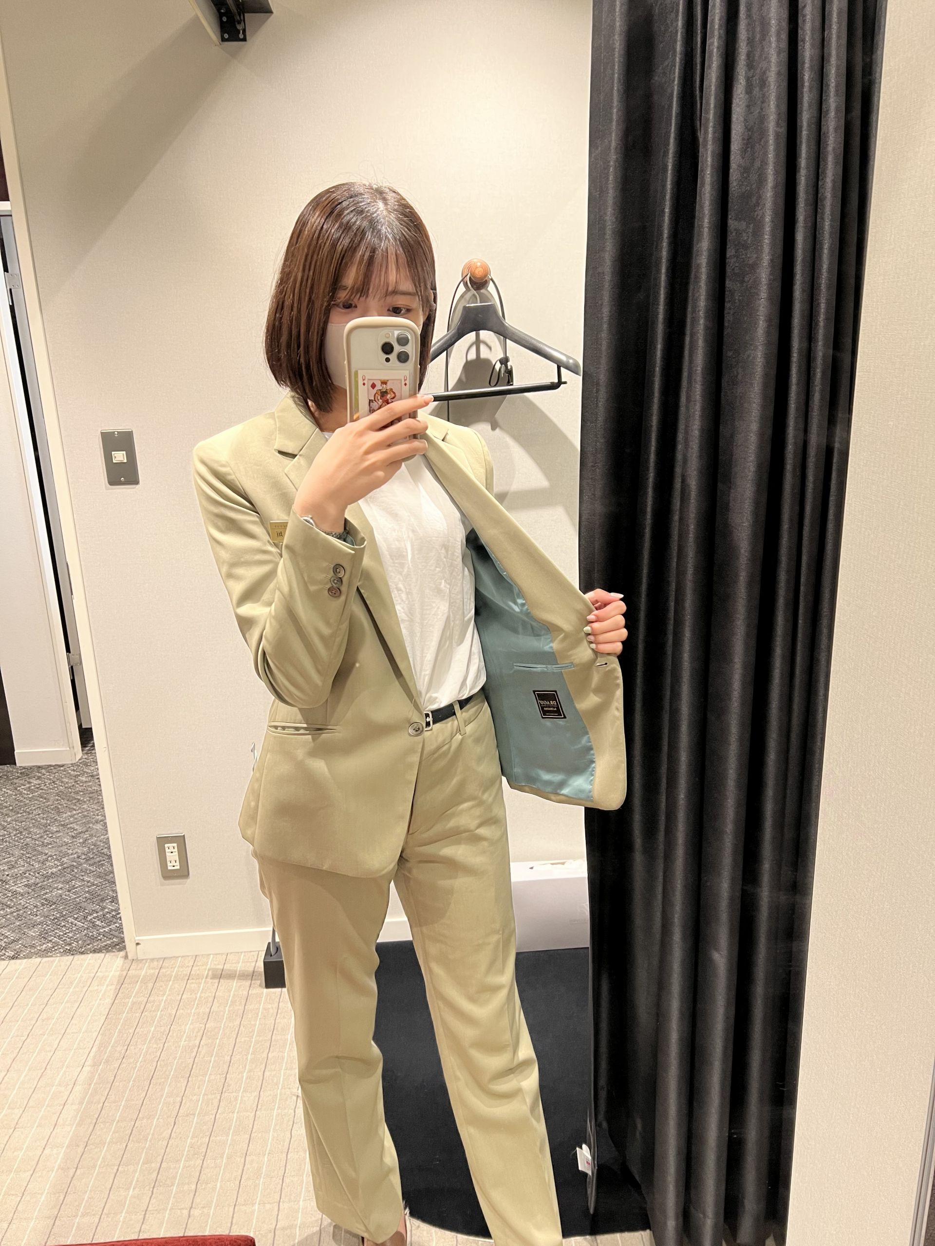 ちょうど今日私もクリームソーダカラーのスーツを着ていたので