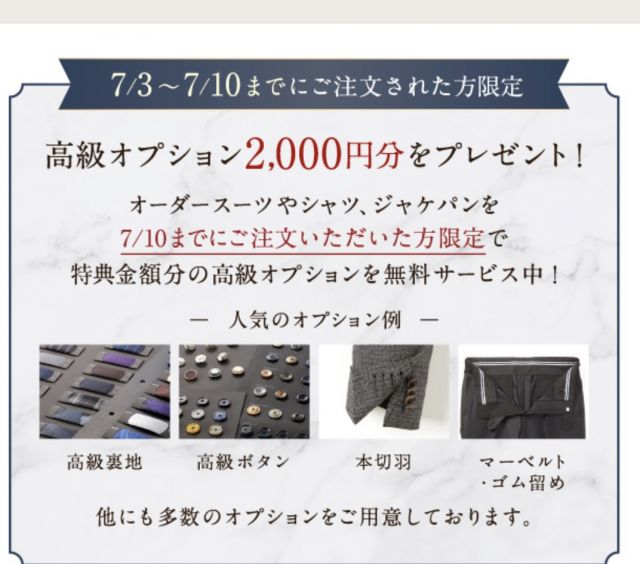 7/3からやっていた有料オプション2000円分プレゼントが今日までとなっています❕
