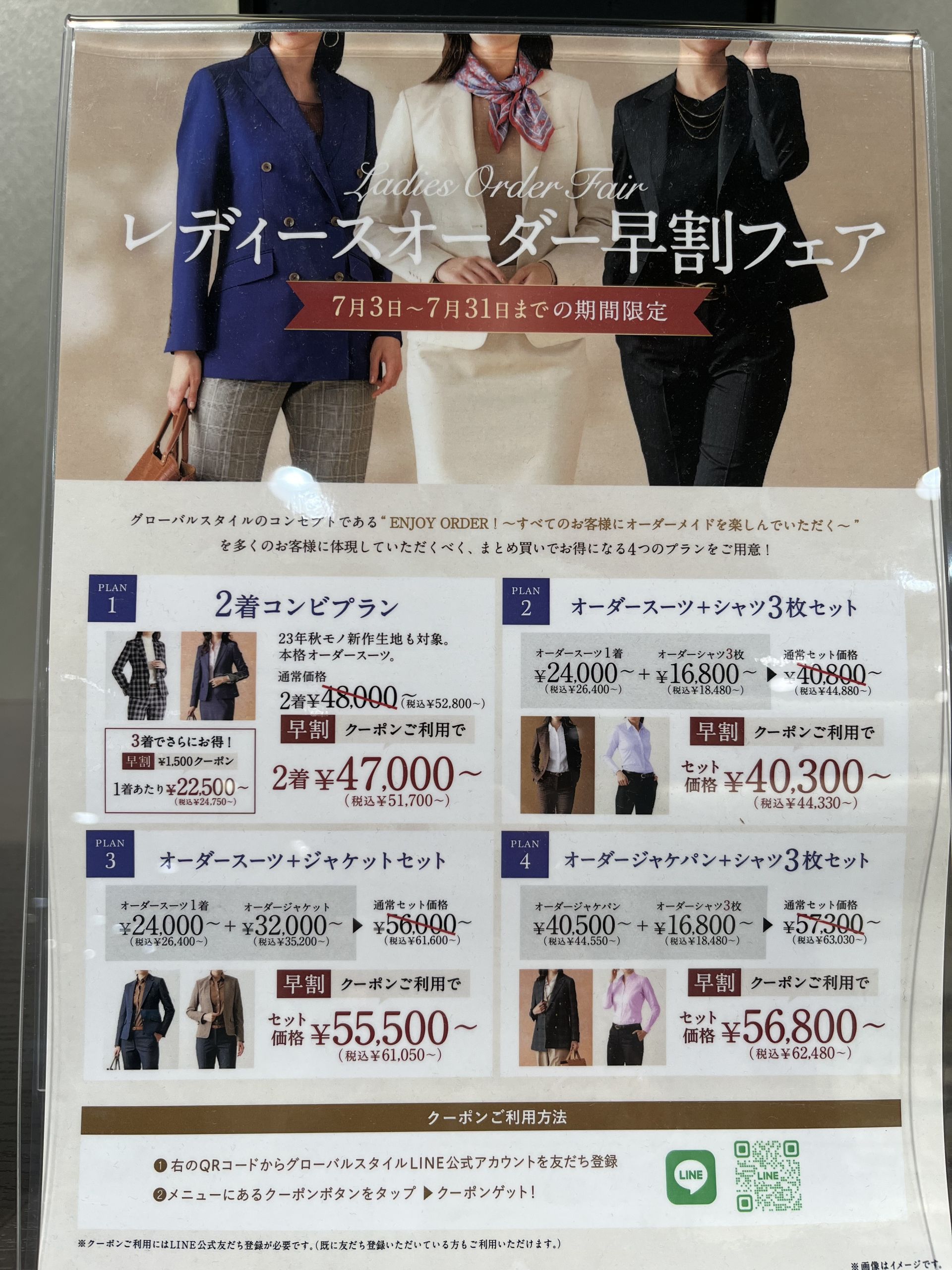 そして今月はお得な早割フェアを開催しているので、是非この機会にレディーススーツをお仕立てしてみてはいかがでしょうか!