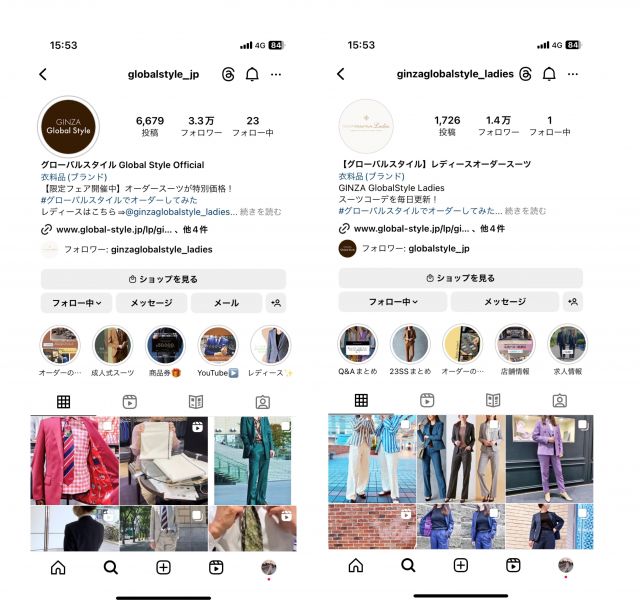①弊社のインスタグラム公式アカウント(メンズ、レディースのいずれか)をフォローして頂く