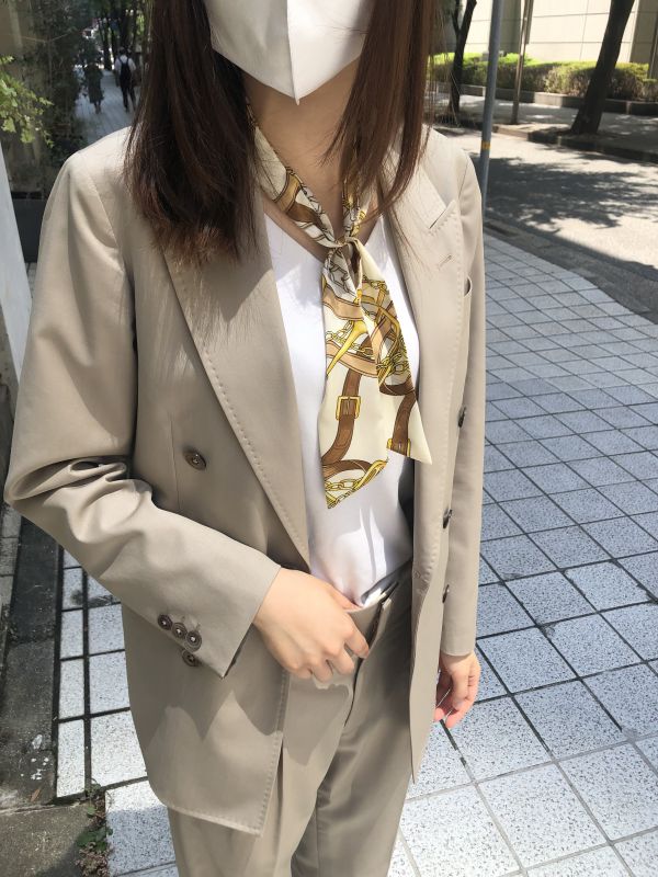 統一感を出しながら同系色の派手すぎないスカーフで合わせると
