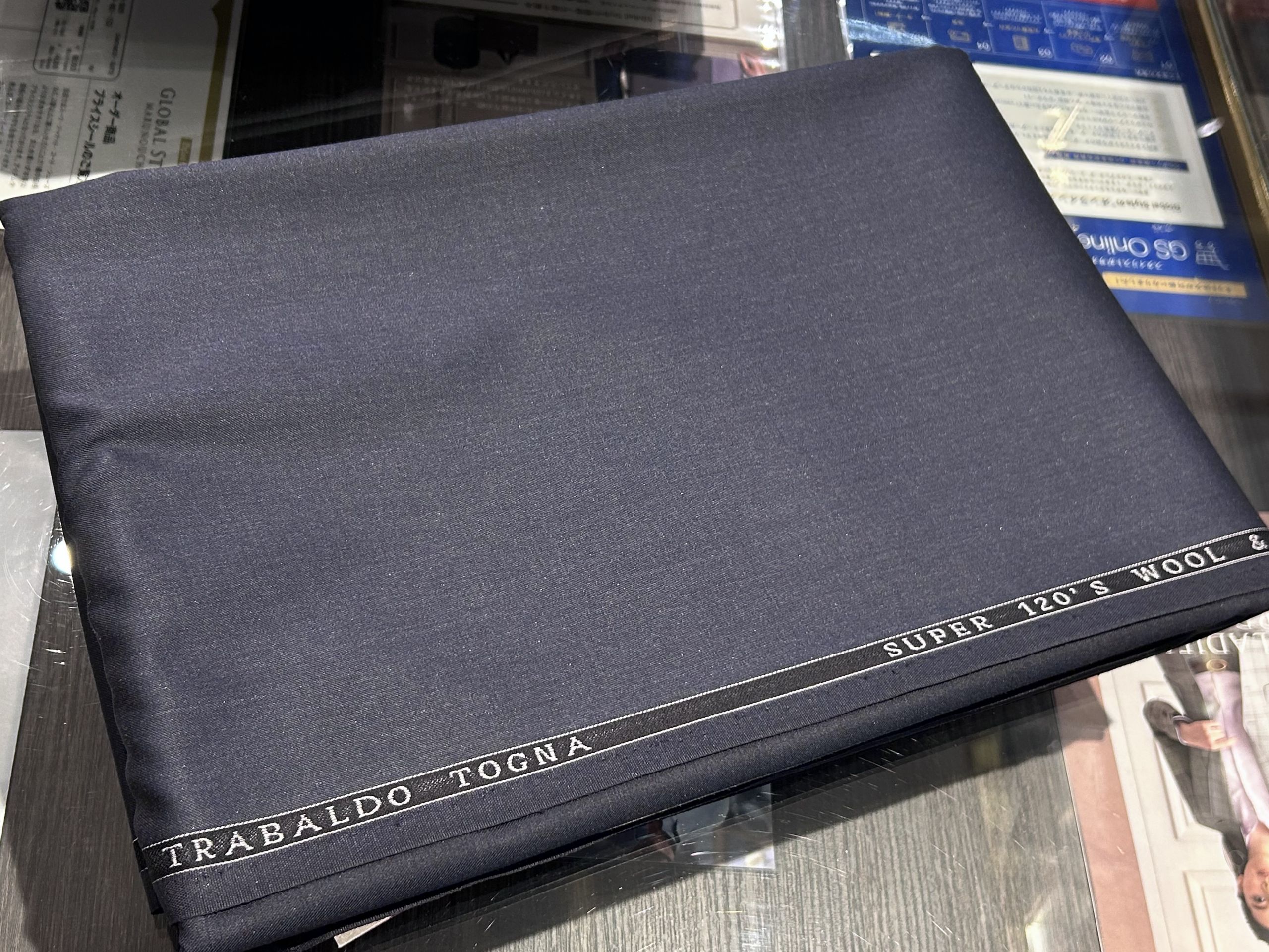 反対に、このネイビーの生地はとてもイタリアらしいやわらかさのある質感です。