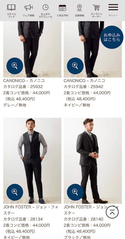 スーツ・シャツイメージ、フェアをお選びいただき送信します。