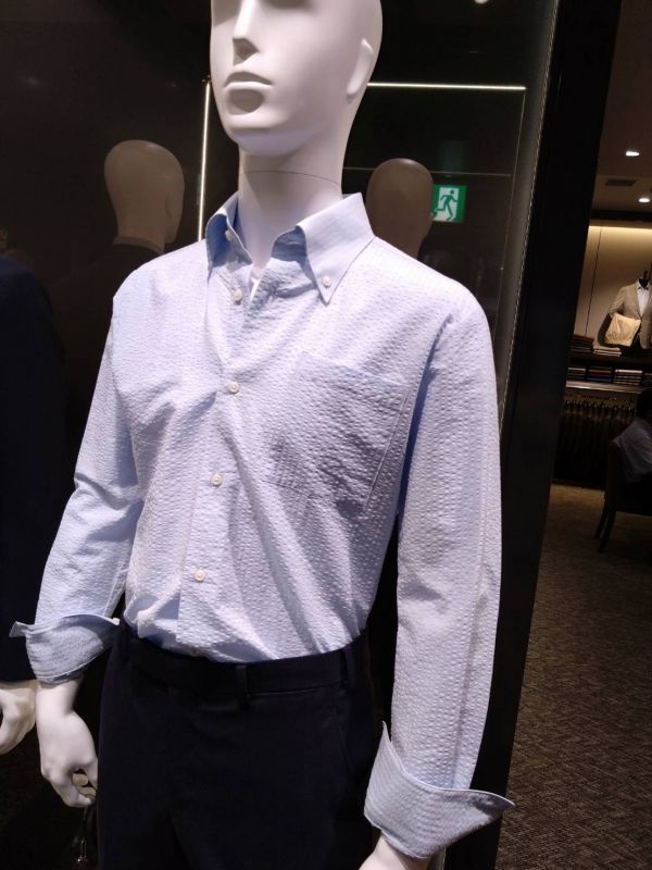 こちらのシャツはシアサッカー素材のシャツ生地で、ボコボコとザラザラが混ざったような