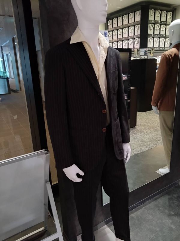 こちらはブラックベースにブラウンのストライプが入ったスーツ。(写真だとわかりづらくてすみません)