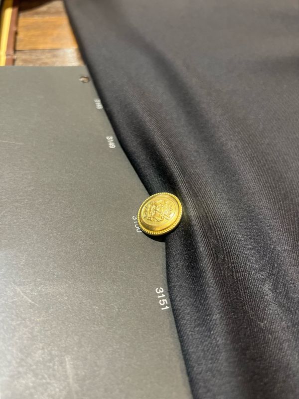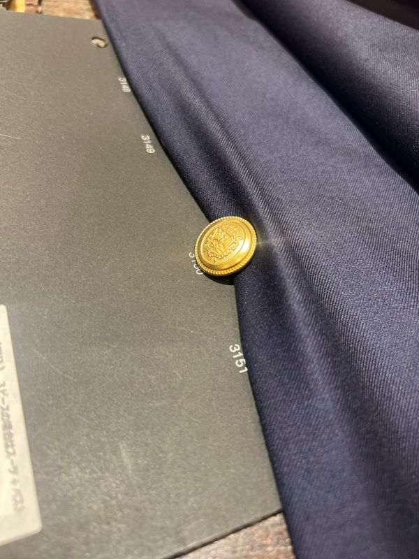 まず1つ目はNVの生地にゴールドのメタル釦です。