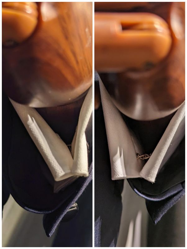 カフリンクスを使うには袖の両方に穴が開いている形でなければ使用できません。