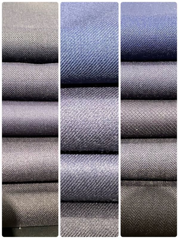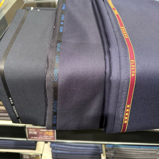 店頭の生地を見ると、ネイビー無地だけでもかなりの量があります。