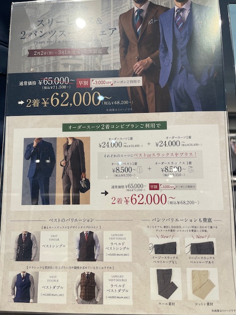 ■オーダースーツをお買い上げの方に、2時間分サービス券 をお渡しいたします。