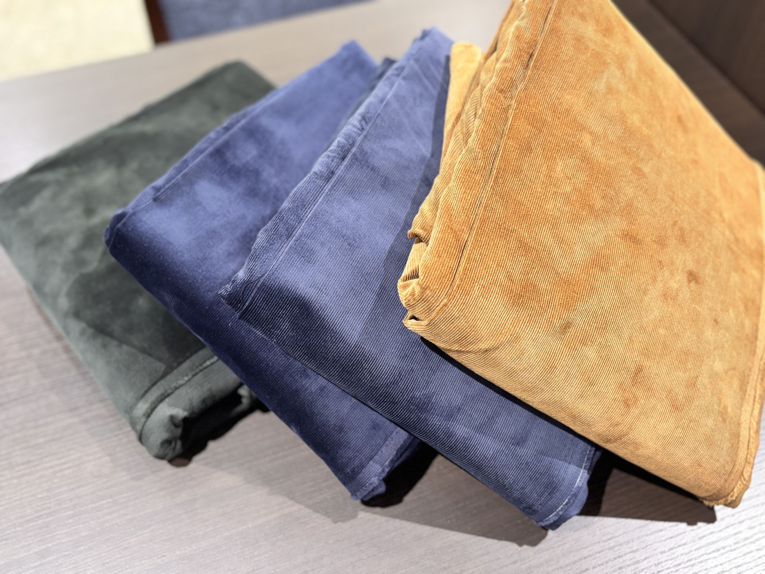 カノニコ / ペレニアルからカーキヘリンボーン(写真奥)。