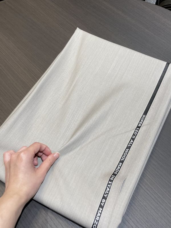 他のジャケットと合わせてジャケパンスタイルも楽しみたいので、どんな生地とも馴染むベージュにしたかったんです。