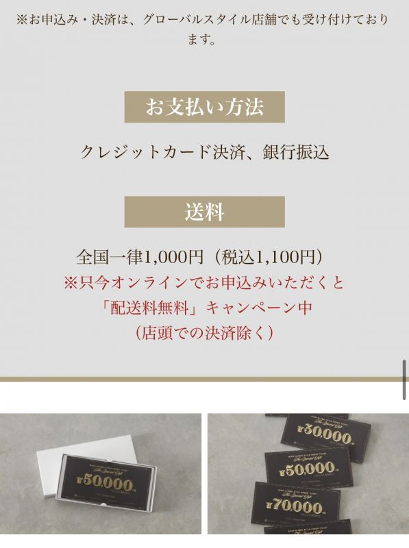 グローバルスタイルではギフト券のお取り扱いがございます。