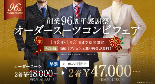 スーツ2着お買い上げの方には、合計金額から1000円引きに加え