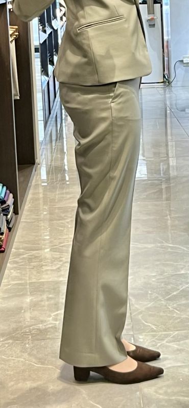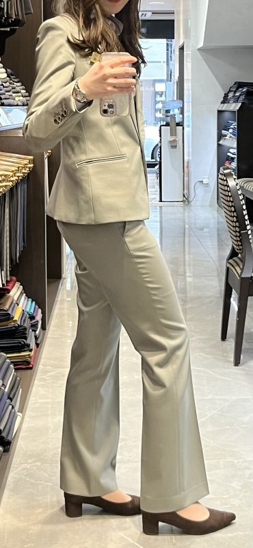 セミフレアパンツは脚のフレアのラインによりカッコよく、キレイに着こなせそうです。