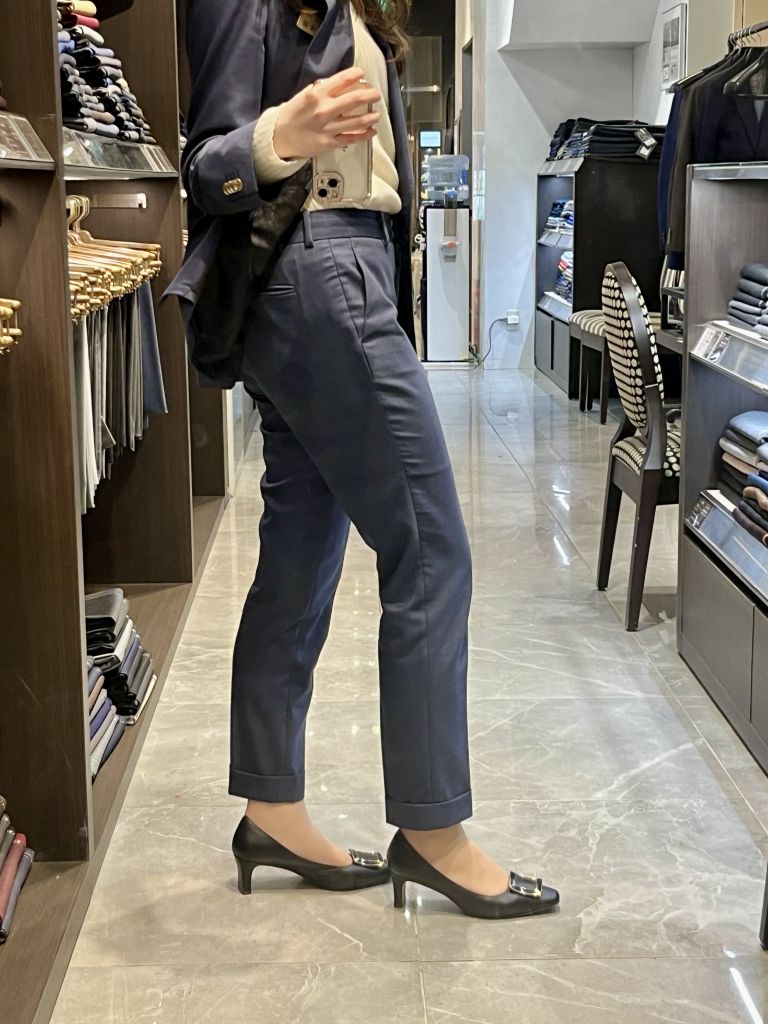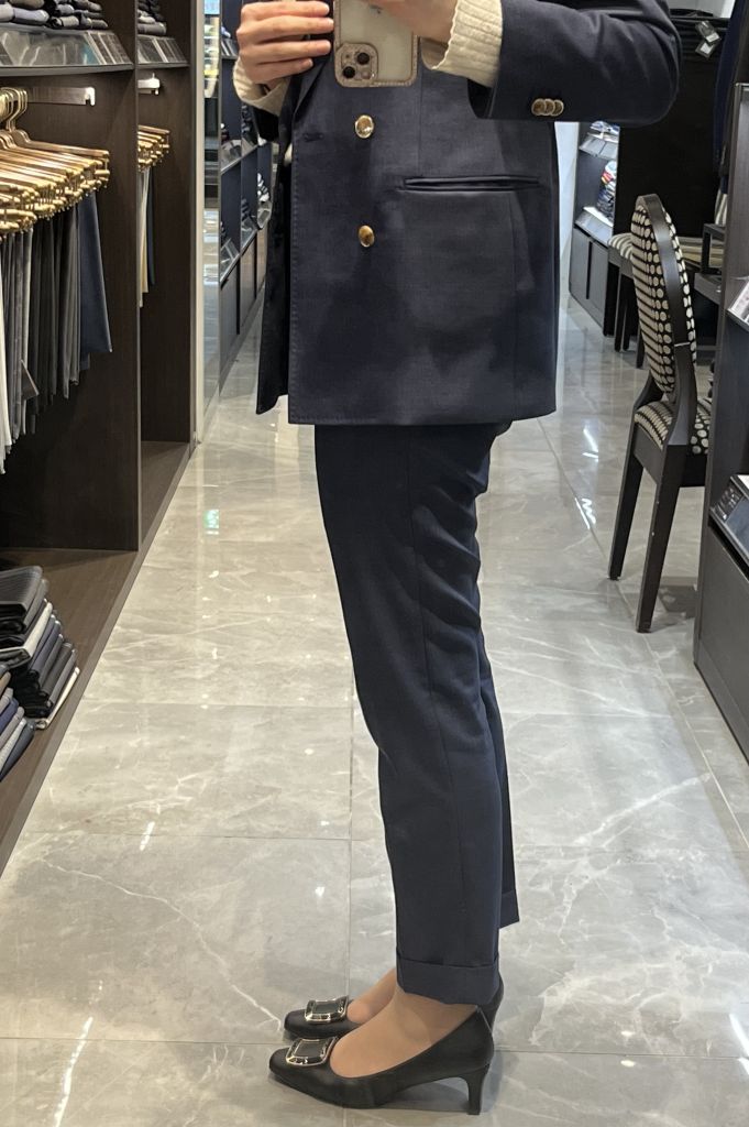 テーパードパンツは足首が少し出ているので華奢な女性らしい印象になります。