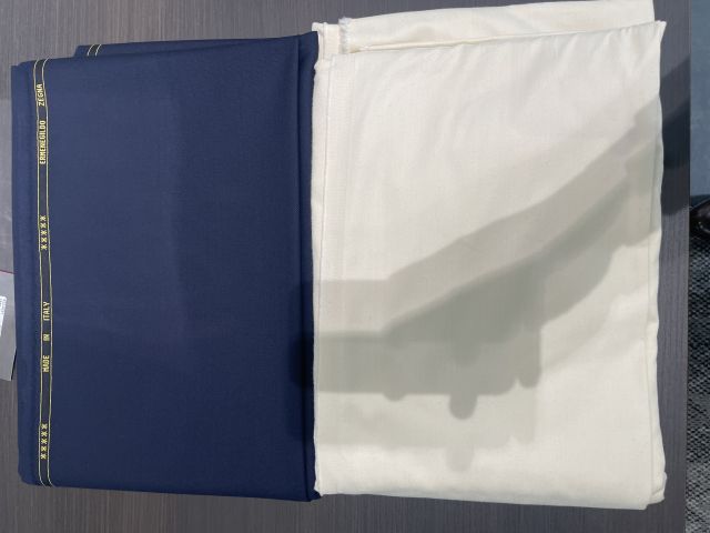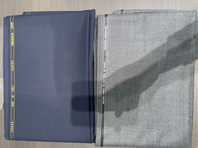 例えばネイビーバーズアイの生地にグレーのスラックス!