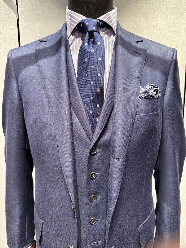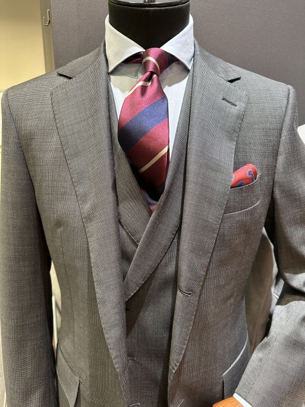 まっさらな無地とは異なって、織り柄が入っているだけで生地の表面に表情がつくのでオーダー感も増しますね。