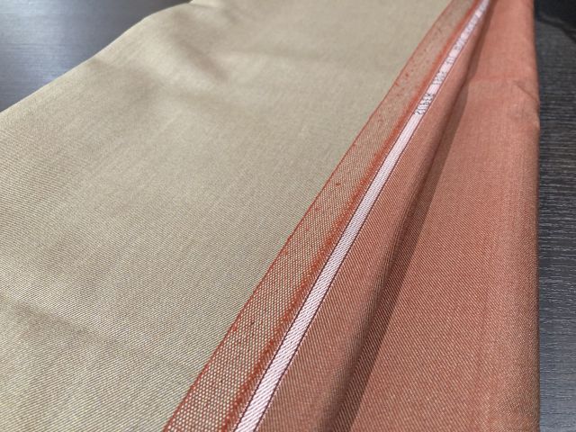強い日光から肌を守るために作られた生地と言われており、経糸(表に多く出ている糸)を明るい色にして紫外線を反射し、緯糸(裏に多く出ている糸)は暗い色にして肌を守っています。