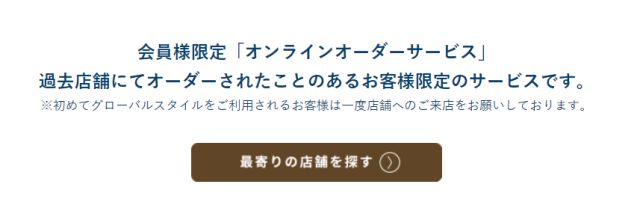 過去に店舗でオーダー(採寸・ご注文)をいただいた事にあるお客様限定のサービスです。