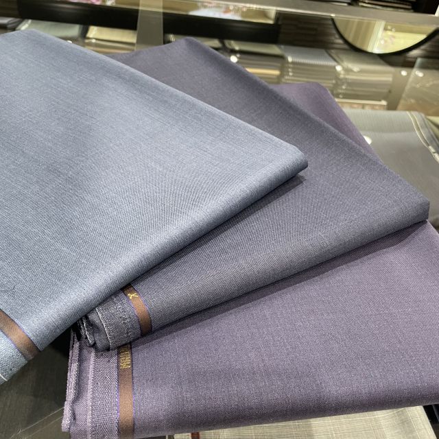 店頭にはたくさん生地のご用意がありますが、パープル系もさりげなく一緒に並んでいるので