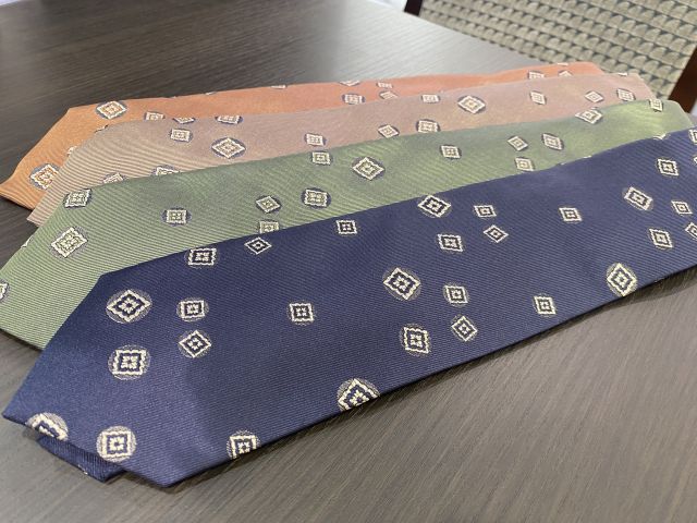 アースカラーのネクタイやちょっとしたアクセントになるネクタイなど様々です。