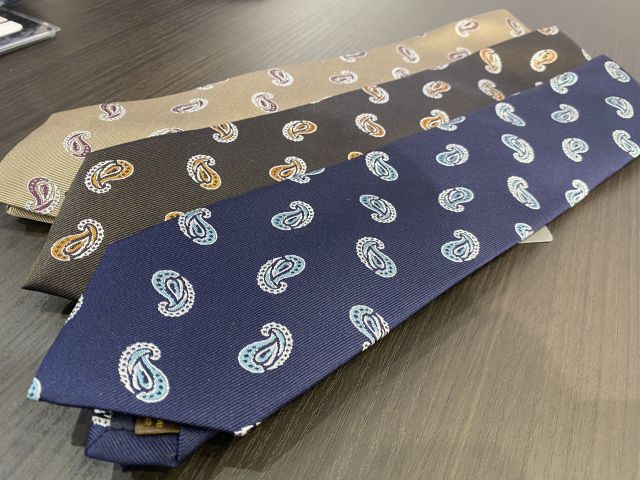 ランダムな柄の小紋タイやペイズリー調のタイが増えました!