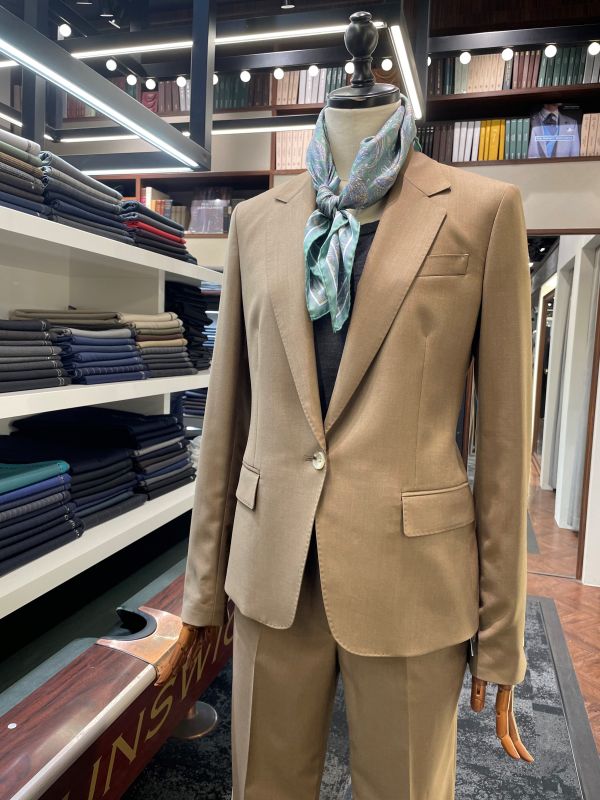 男性のスーツですとベージュは少し難しいお色味になりがちですが、女性のスーツとしては人気のお色味です。