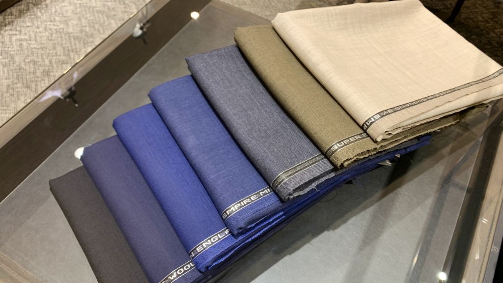 目付はシッカリ目の290g/mで、ブリティッシュサマートロピカルでは定番になってきた2PLYの強撚糸系特有のハリとシャリ感。清涼感のある素材感です。