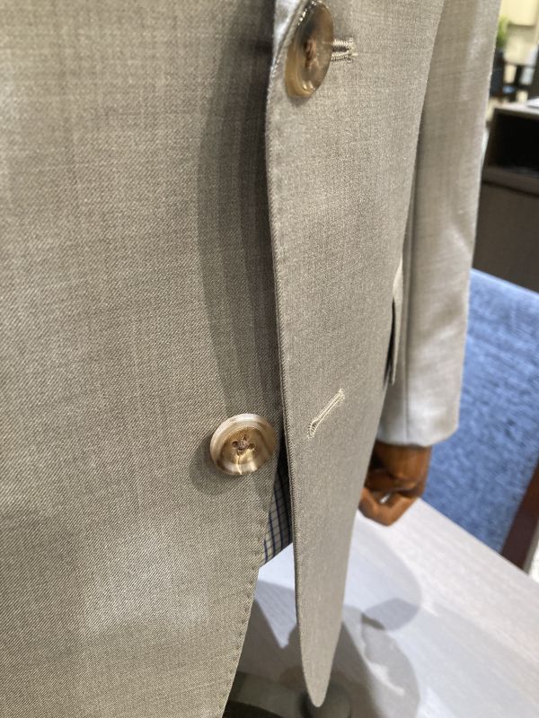 ボタンは、高級釦の代名詞水牛の釦でございます。