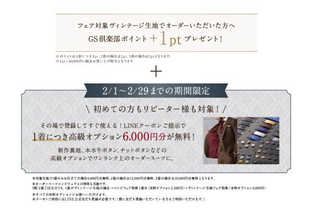 特典として1着に付き、1ポイントサービスと、6000円分のオプションが付けれちゃいます!!