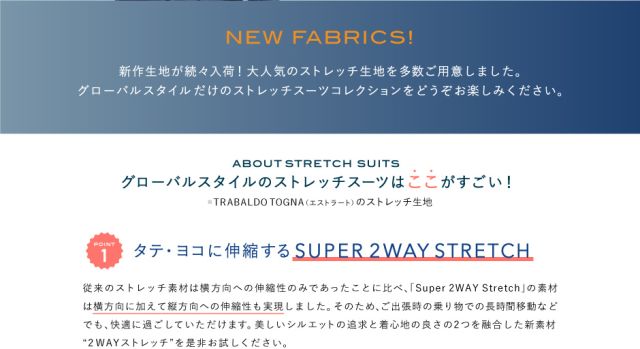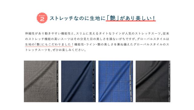グローバルスタイルでも人気が高いストレッチ生地✨