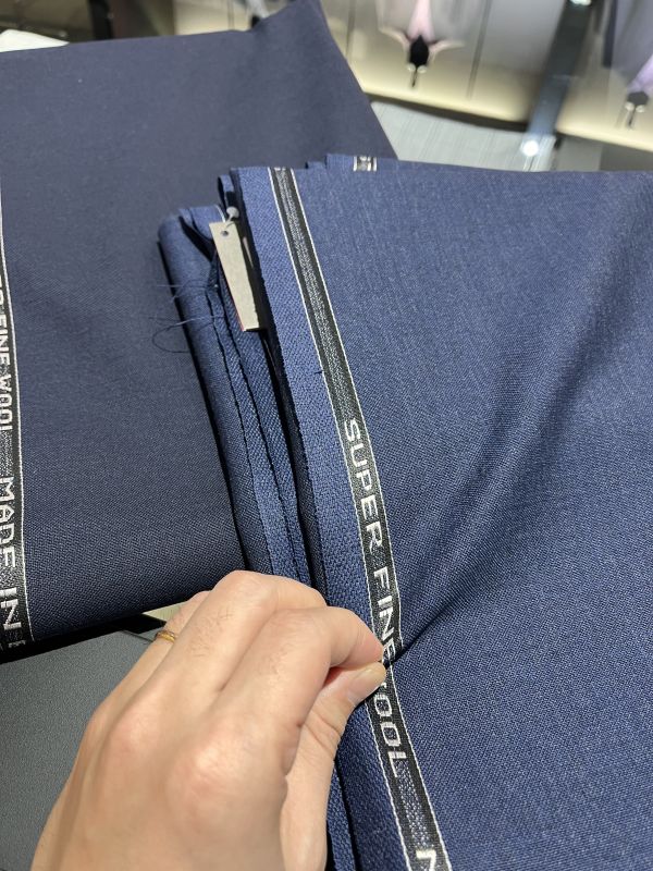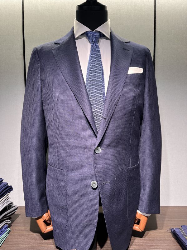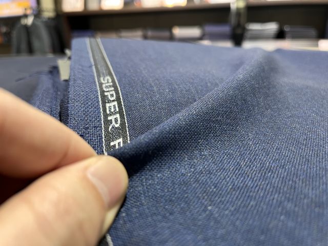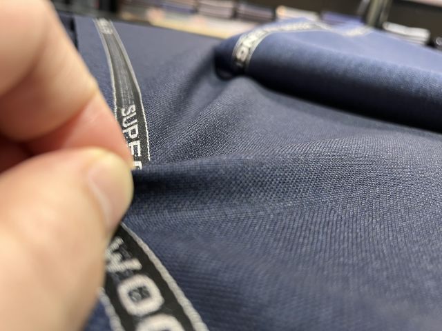 この生地のダークネイビーでスーツでお仕立て頂くと