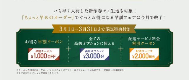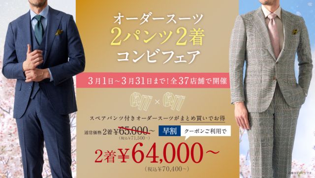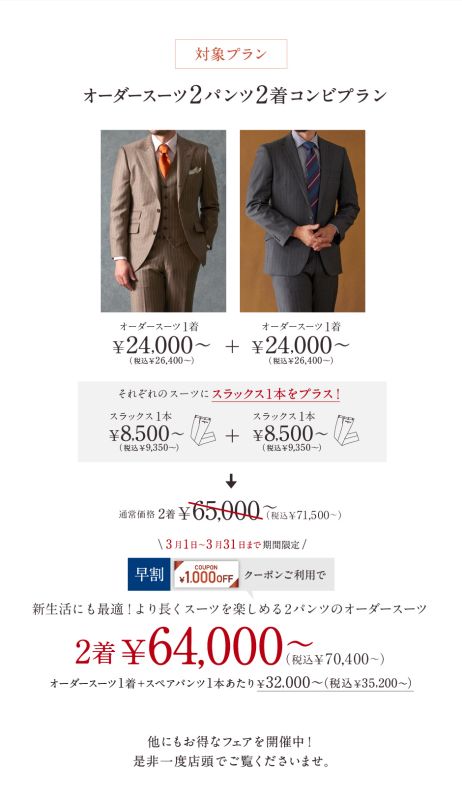 通常2着2パンツでスタート金額が65,000円からなんですが、今月は