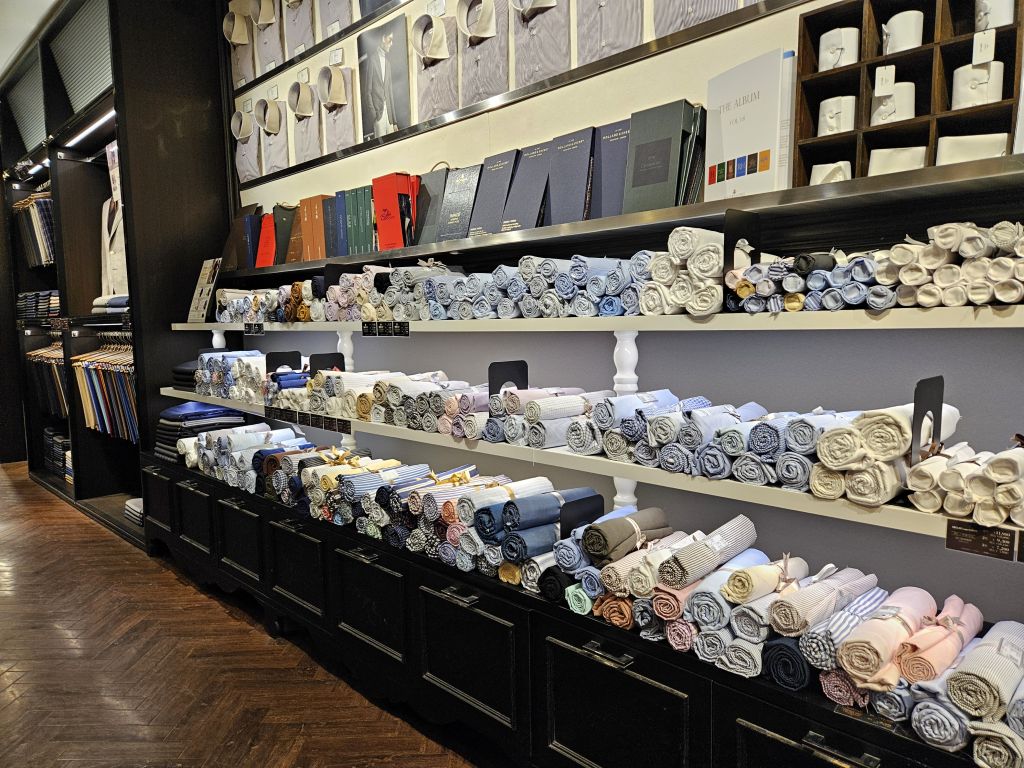 まずは、店頭シャツ生地が集う箇所を通り過ぎ、
