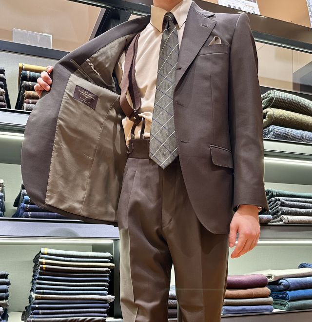 ダークブラウンのスーツは1着持っていましたが、そこそこくたびれてきていたので新調しました。