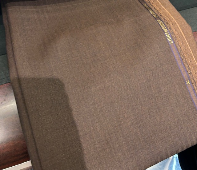ヘリンボーン柄になっていて、暗い部分がある分ブラウンの鮮やかさが強調されて春にぴったりの生地になります。