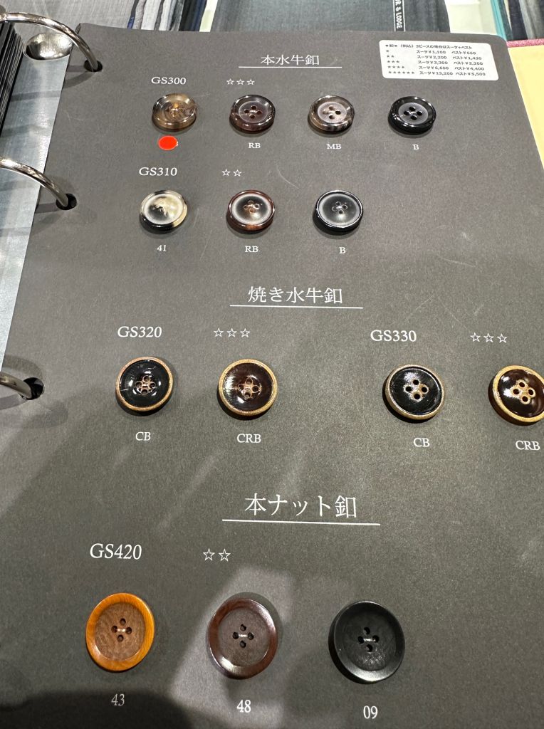 釦一つ一つが違う模様なのでそれも水牛釦の良さです。