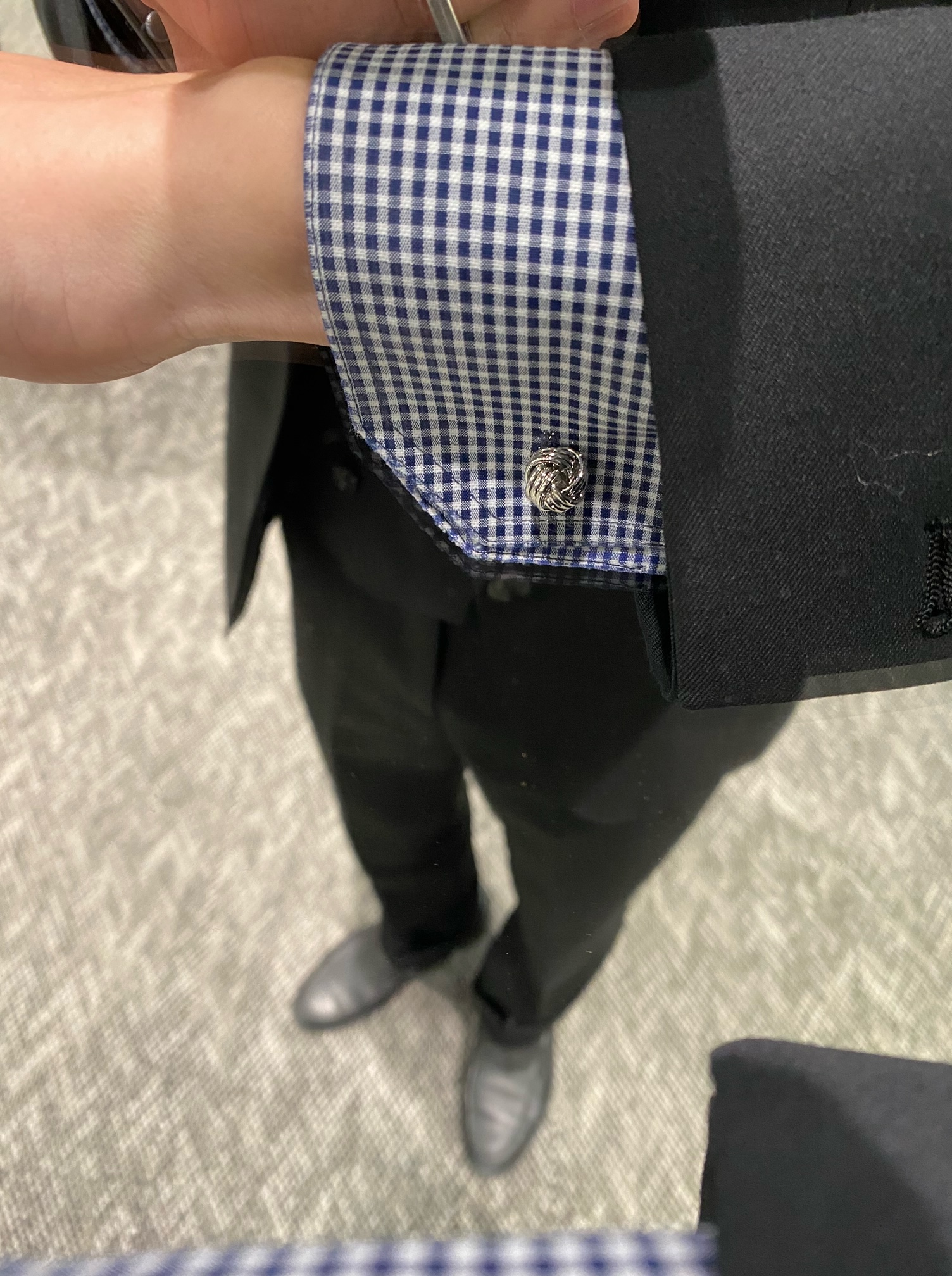 カフスを付ける際は釦ホールが2個空いていないと使用できませんのでご注意ください。