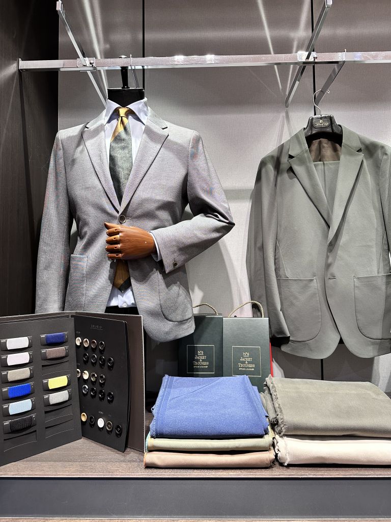 いわゆる一般的なスーツよりは、ややカジュアルダウンしたような肩パットもなく軽い素材感が特徴です。