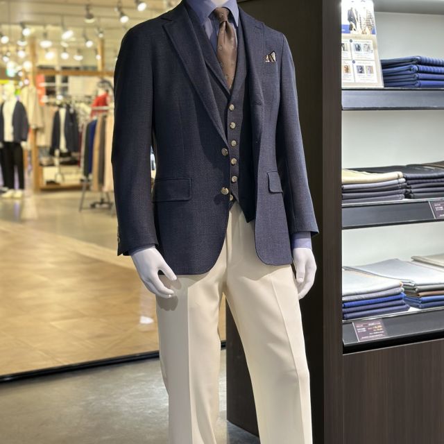 上下でお作りして、スラックスを紺ブレやブラウン系のジャケットに合わせてもいいですね✨