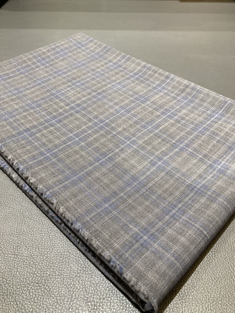 1つ目は、REDAからグレーベースのチェックにブルーのチェックが入った生地となります。