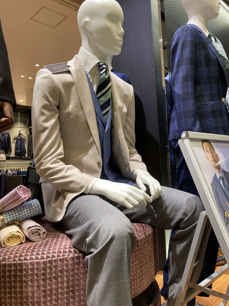 ベージュは幅広いお色と、ブルー系のアイテムと相性が非常に良いので、お持ちのスーツ・シャツ・ネクタイとも素敵に合わせていただけます!