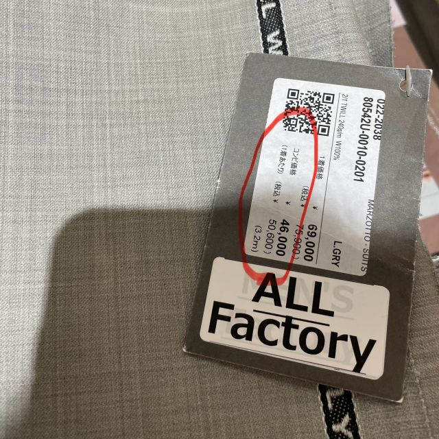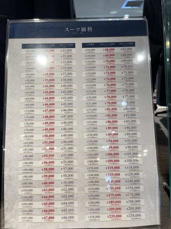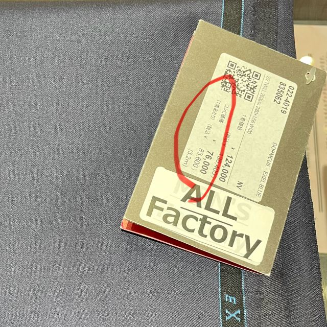 ネイビー生地が一着だけだと税抜き124,000円なので、二着買ったほうが