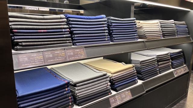 ラインナップとしても、ヴィンテージ生地というだけありトラッドなチェック柄や大柄なストライプなどもちろんご準備ありますので、クラッシック回帰の流れがある昨今にマッチした生地が見つかります。さらには現行でもたくさんあるネイビー無地やグレーなど、お仕事でも使いやすい色柄もありますので、そちらもぜひ店頭でご覧ください。