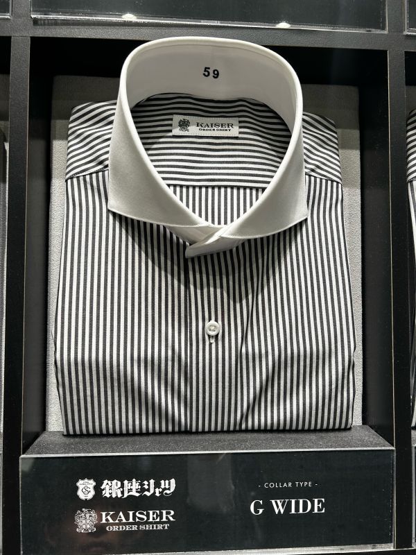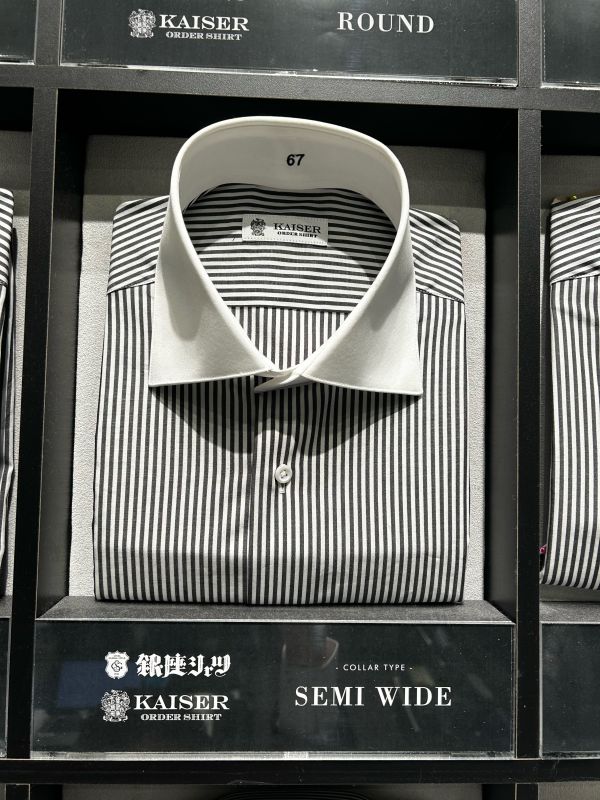 セミワイドよりも襟開きが広く、夏場の首元もすっきり見えます。